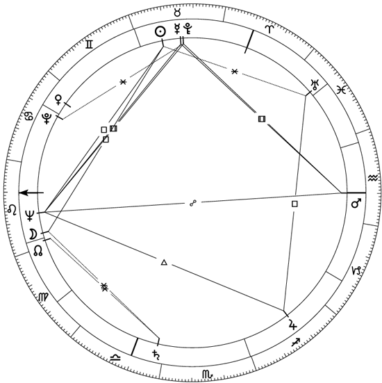This is a fascinating account that describes with absolute clarity the juxtaposition of Mercury with Orcus, the nervous system has made a prison of the body. His first symptoms appeared in 1990, just as a series of Orcus-Neptune squares came to a conclusion and Jupiter opposed natal Orcus by Solar arc.